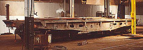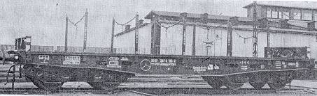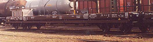 Dieses Foto zeigt den Plattformwagen 412Z in einer der verschiedenen Anwendungsformen, mit Aufsätzen zum Transport von Behältern. An den Zapfen können genauso Container, bei innerer Absenkung des Bodens u.a. auch High Cube-Container, befestigt werden. Aktuell ist eine Partie von bis zu 50 dieser Plattformwagen inclusive Revision anzubieten.