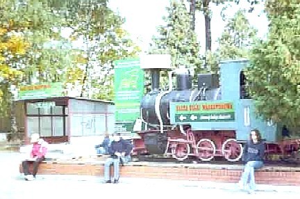 Die Bahnanlagen der Kleinbahn befinden sich direkt hinter den Normalspurgleisen und sind durch eine Unterführung erreichbar. Den Weg weist eine vor dem Normalspurbahnhof aufgestellte LAS-Dampflok.