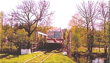 Gleich nach der Ausfahrt aus dem Kleinbahnhof führt die Strecke über eine Brücke.