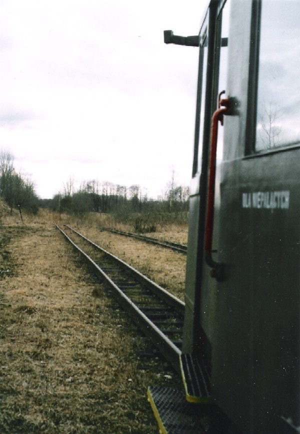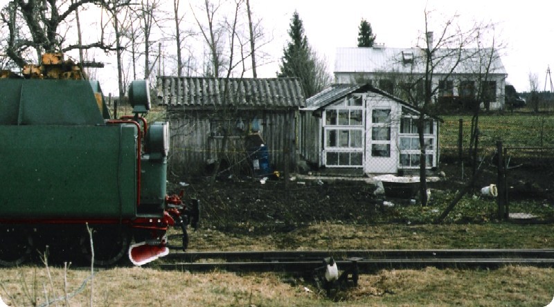 Die Bahnstrecke endet überraschend im "Niemandsland": linkerhand ein kleines Backstein-Bahnhofshäuschen und eine kleine Siedlung, rechterhand (Foto) ein Schuppen mit Gewächshaus und in der Ferne ein einzelnes Wohnhaus. Hier, in Turowo, endet die Strecke ohne Prellbock. Früher verlief hier die Grenze zu Russland, nach der Neugliederung des polnischen Grenzverlaufs war zwar eine Verlängerung geplant gewesen, wurde aber nicht mehr durchgeführt. Daher heisst es hier: Umsetzen der Dampflok und Rückfahrt nach Elk! (23 Fotos: H. Schmidtendorf)