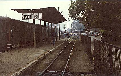 Il y a 100 ans, en 1902, ce chemin de fer à voie étroite fut fondé. Il avait la tâche de relier les villages et petites villes dans l'arrondissement alors allemand de Schroda avec la ville de Posen. Suite au référendum effectué conformément à la résolution de la Société des Nations, la région devint polonaise après 1918. Depuis, ces villes s'appellent Sroda (après 1945 Sroda Wielkopolska - abrégé Wlkp. - pour la distinguer de Sroda Sla,ska - abrégé Sl. - en Basse Silésie) et Poznan. Au début, la ligne était à voie métrique, avec une partie à voie normale.