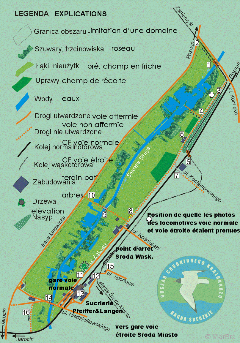 La ligne conservée Sroda gare à voie étroite - Zaniemysl est très attrayante. Elle passe sur un pont au-dessus de la ligne à voie normale Poznan - Katowice, à l'occasion de quoi elle doit vaincre de longues rampes.