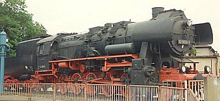 Zwei russische TE-Lokomotiven wurden mit Hilfe des Reparaturwerks Olesnica in den 90er Jahren im Originalzustand nach Deutschland überführt. Fotos(2): Die TE 3264 Ex BR 52-3246 auf dem AW-Gelände in Olesnica, darunter eine "Reko"-52er: BR 52 8056-5 (52 6778) der Deutschen Reichsbahn vor dem Hauptbahnhof in Bautzen.