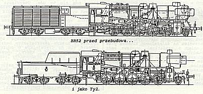 In der DDR baute die Deutsche Reichsbahn ab 1960 einen verbesserten ("Reko") Kessel ein (Serienbezeichnung 52.80) und führte Mischvorwärmer ein, beliess aber viele Einzelheiten der originalen Konstruktion. Verbesserungen und Modernisierungen führte auch die westdeutsche Bahnverwaltung der DB durch. Die Unterschiede zwischen einer Original BR 52 (Kondens) und einer Ty 2 verdeutlicht eine Zeichnung des Modellbauers Jan Jarzina. Deutlich wird u.a. , dass die Ty 2 die Stromturbine vom Kessel entfernt und auf den Kesselumlauf gelegt hat.