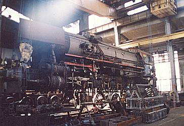Dieses Foto von Jean-Pierre Tramasures zeigt die durch INTERLOK hauptrevidierte und an den belgischen Verein PFT/TSP ausgelieferte 26.101 (Ex Ty 2-3554) in originaler belgischer Farbgebung und Beschriftung bei einer Fahrt am 6.8.1995 in der Nähe von Montzen. Unten: Kesseldruckprobe und Endmontage der Lok entsprechend belgischen Eisenbahnnormen durch INTERLOK im AW Olesnica. (Fotos: Hermann Schmidtendorf)